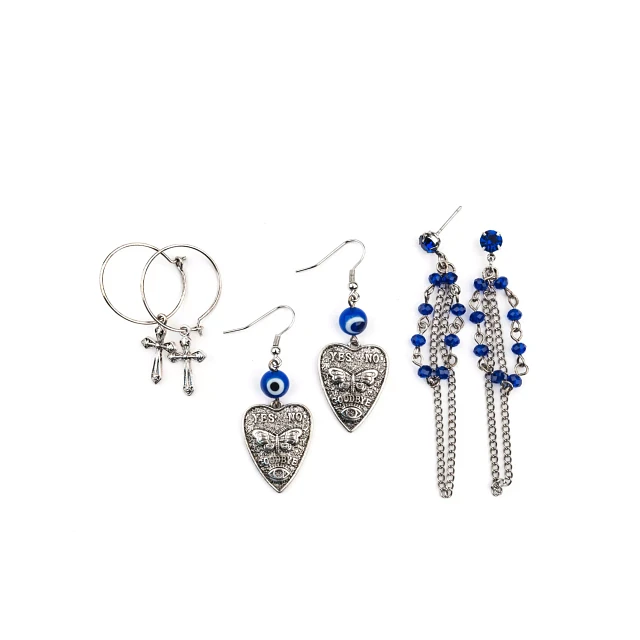 Silver Heart, Evil Eye & Cross Hoop Earrings 3-Pack