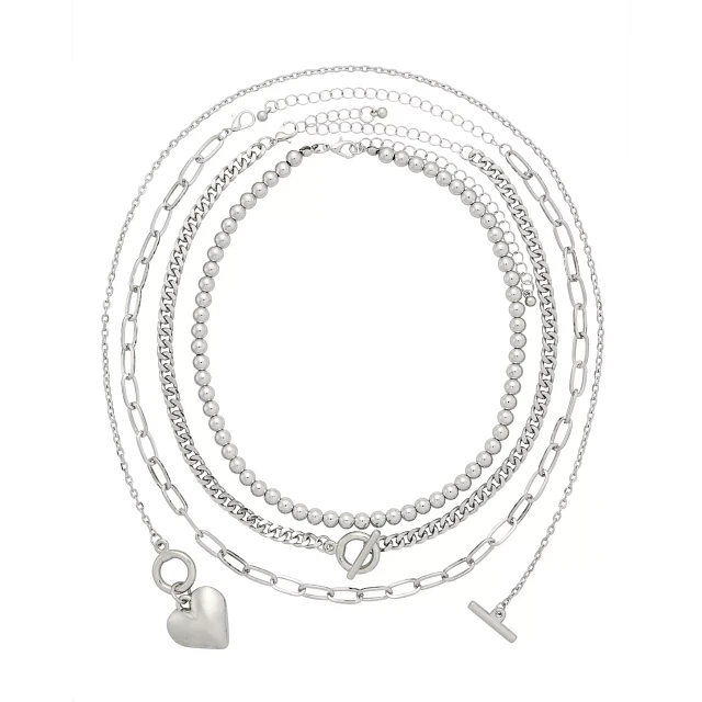 Silver Mixed Chain Choker 4-Pack