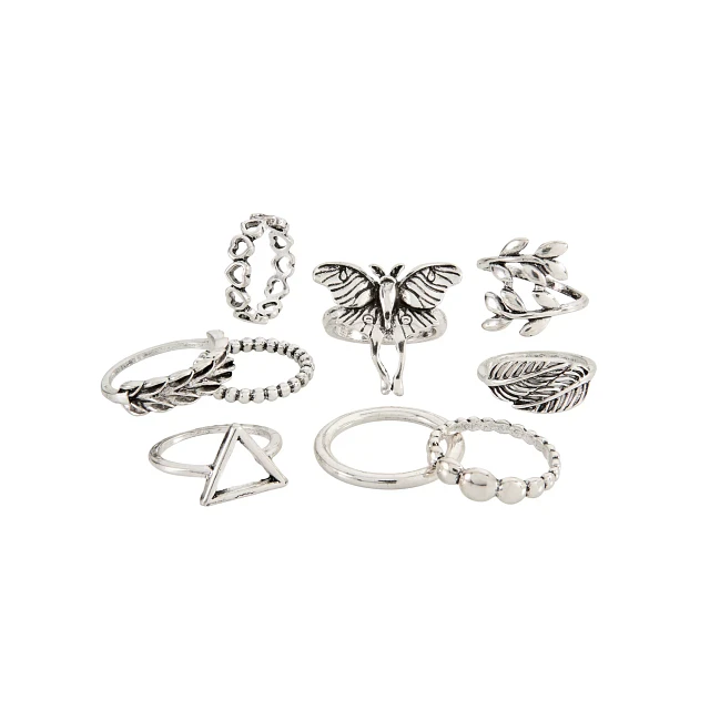 Multi-Pack Moth and Leaves Assorted Rings - 9 Pack