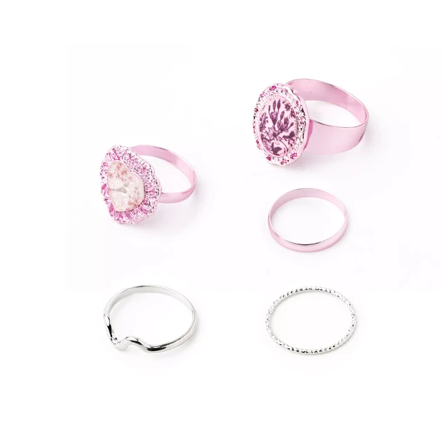 Multi-Pack Pink and Silvertone Heart Floral Rings - 5 Pack