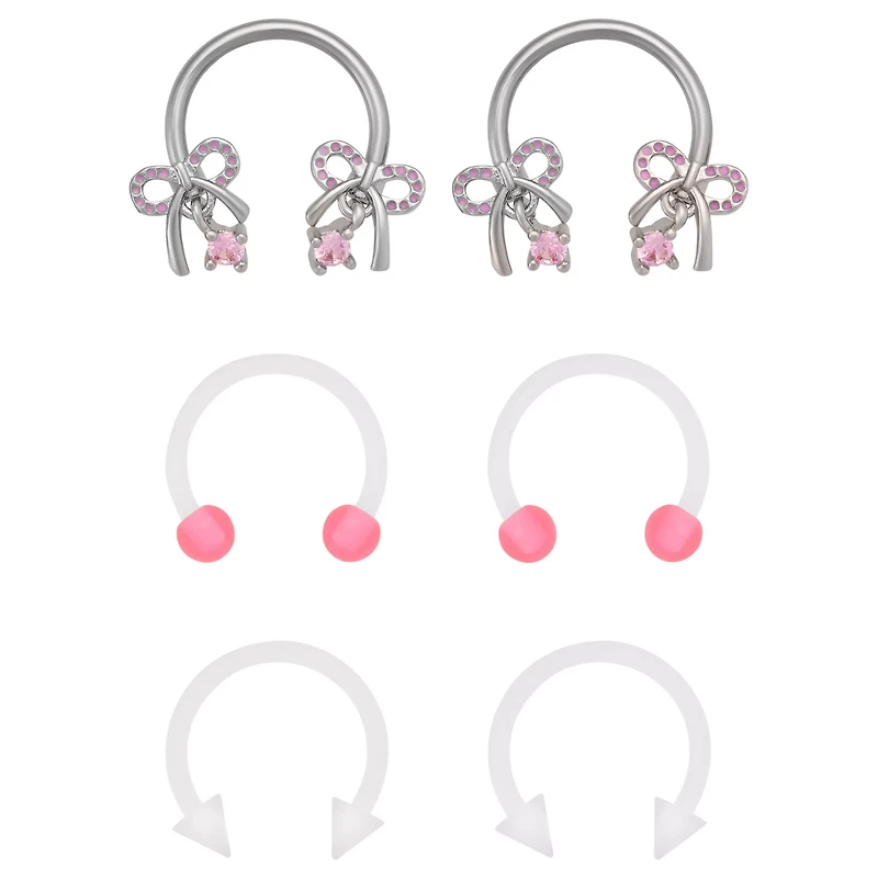 Shop Spencer’s for the perfect Multi-Pack Pink CZ Bow Spike Horseshoe Rings 6 Pack - 16 Gauge. Make us your destination for all things Body Jewelry. **SHOP NOW & SAVE**