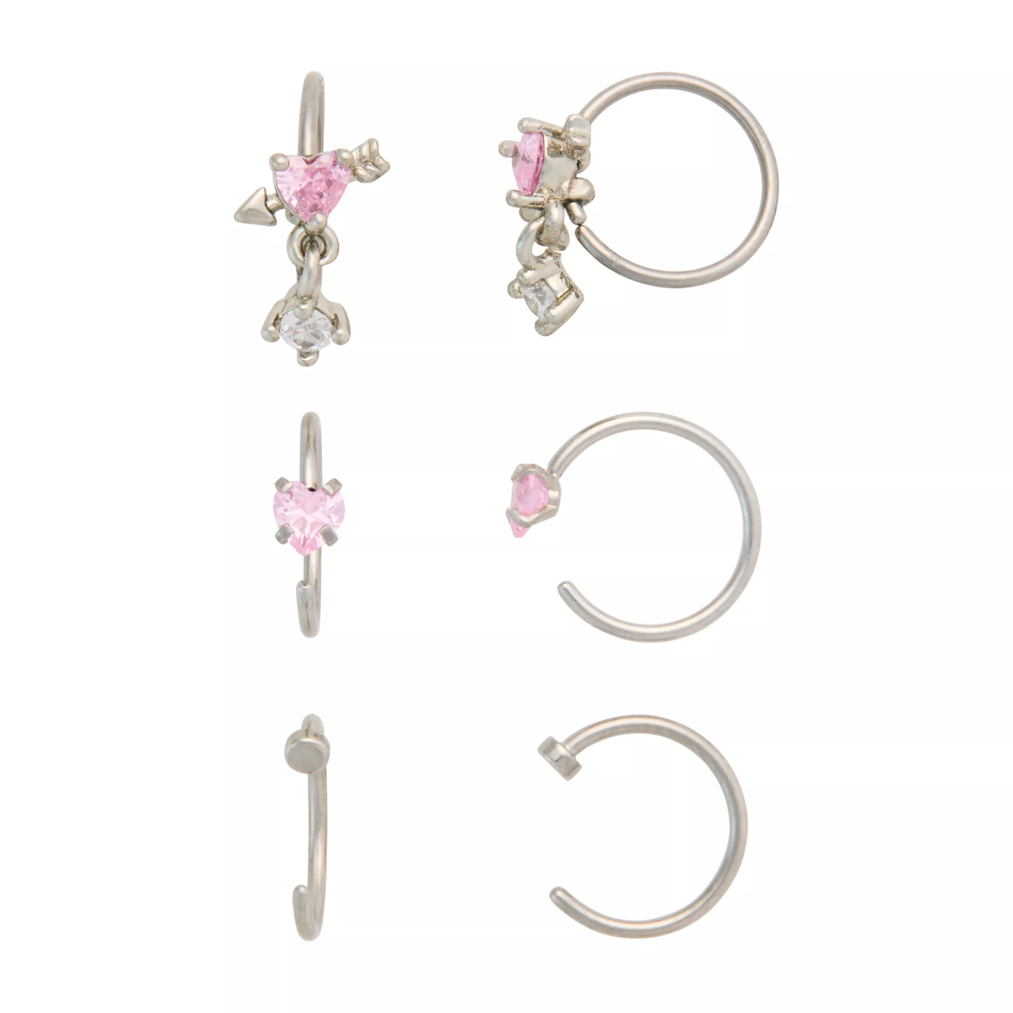 Shop Spencer’s for the perfect Multi-Pack Pink CZ Heart Dangle Nose Hoops 6 Pack - 20 Gauge. Make us your destination for all things Body Jewelry. **SHOP NOW & SAVE**