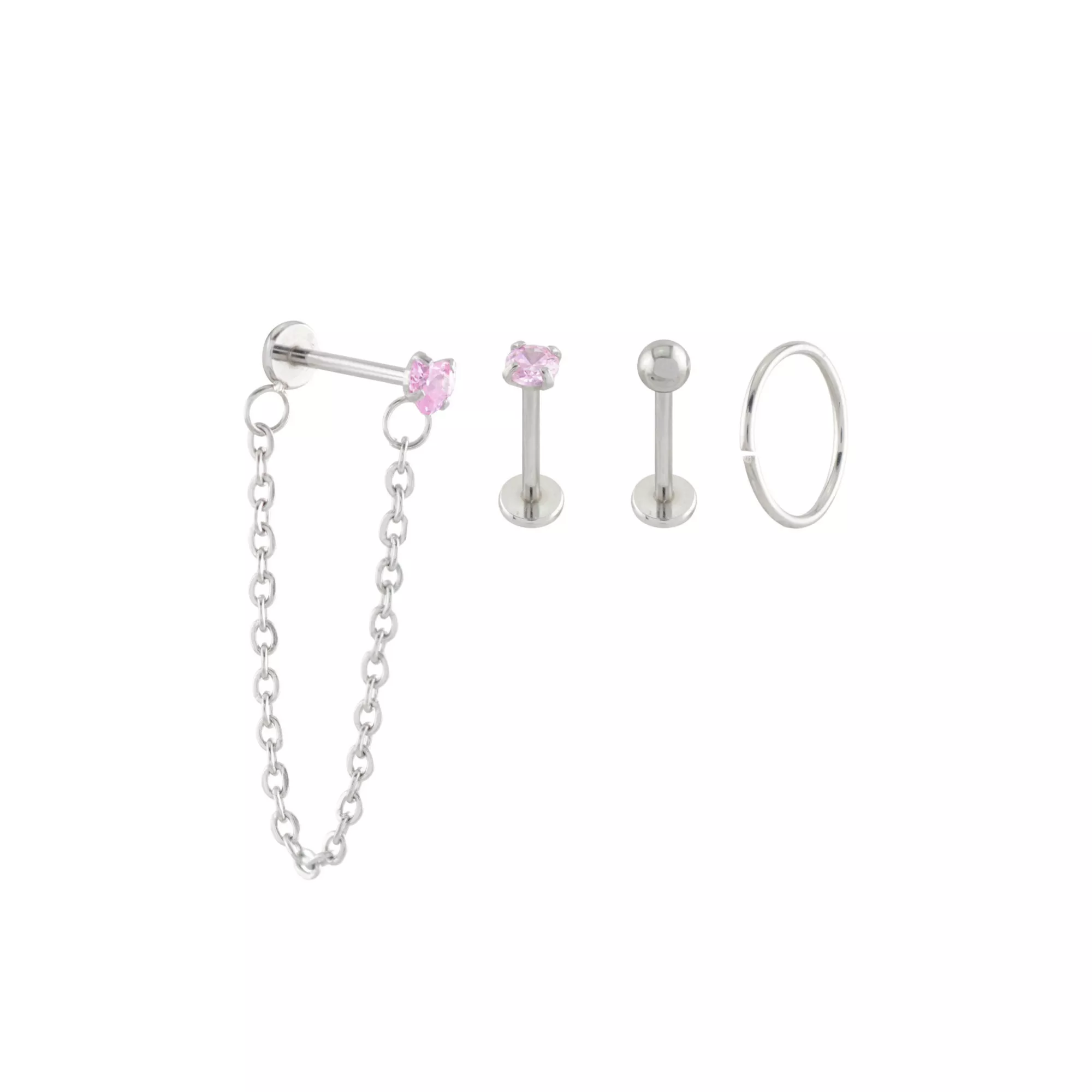 Multi-Pack Pink CZ Heart Labret Rings and Hoop 4 Pack - 18 GaugeMulti-Pack Pink CZ Heart Labret Rings and Hoop 4 Pack - 18 GaugeMulti-Pack Pink CZ Heart Labret Rings and Hoop 4 Pack - 18 Gauge