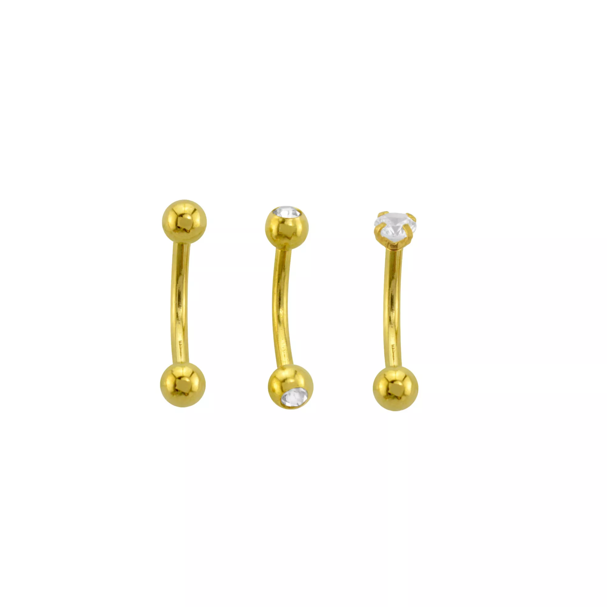 Multi-Pack Prong CZ 14K Gold-Plated Curved Barbells 3 Pack - 16 GaugeMulti-Pack Prong CZ 14K Gold-Plated Curved Barbells 3 Pack - 16 Gauge