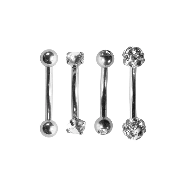 Multi-Pack Spiked and Chain Curved Barbells 4 Pack - 16 Gauge