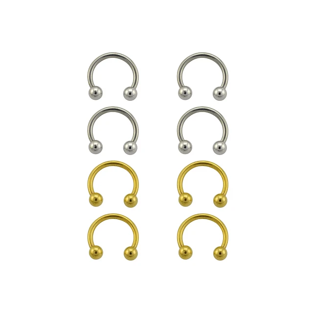 Multi-Pack Silvertone and Goldtone Titanium Horseshoe Rings 8 Pack - 14 Gauge