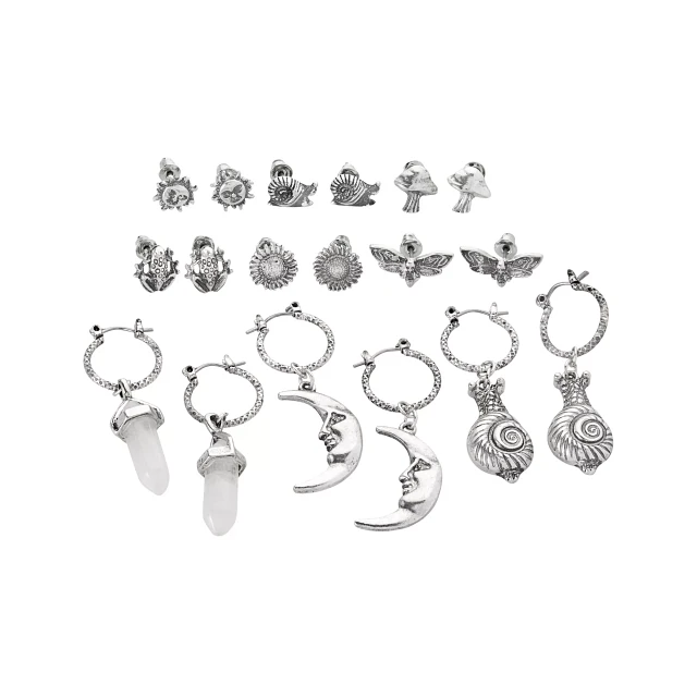Multi-Pack Silver Grunge Earrings - 9 Pack