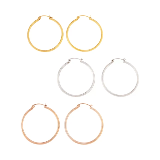 Multi-Pack Silvertone Goldplated and Rose Goldplated Hoop Earrings 3 Pairs - 20 Gauge