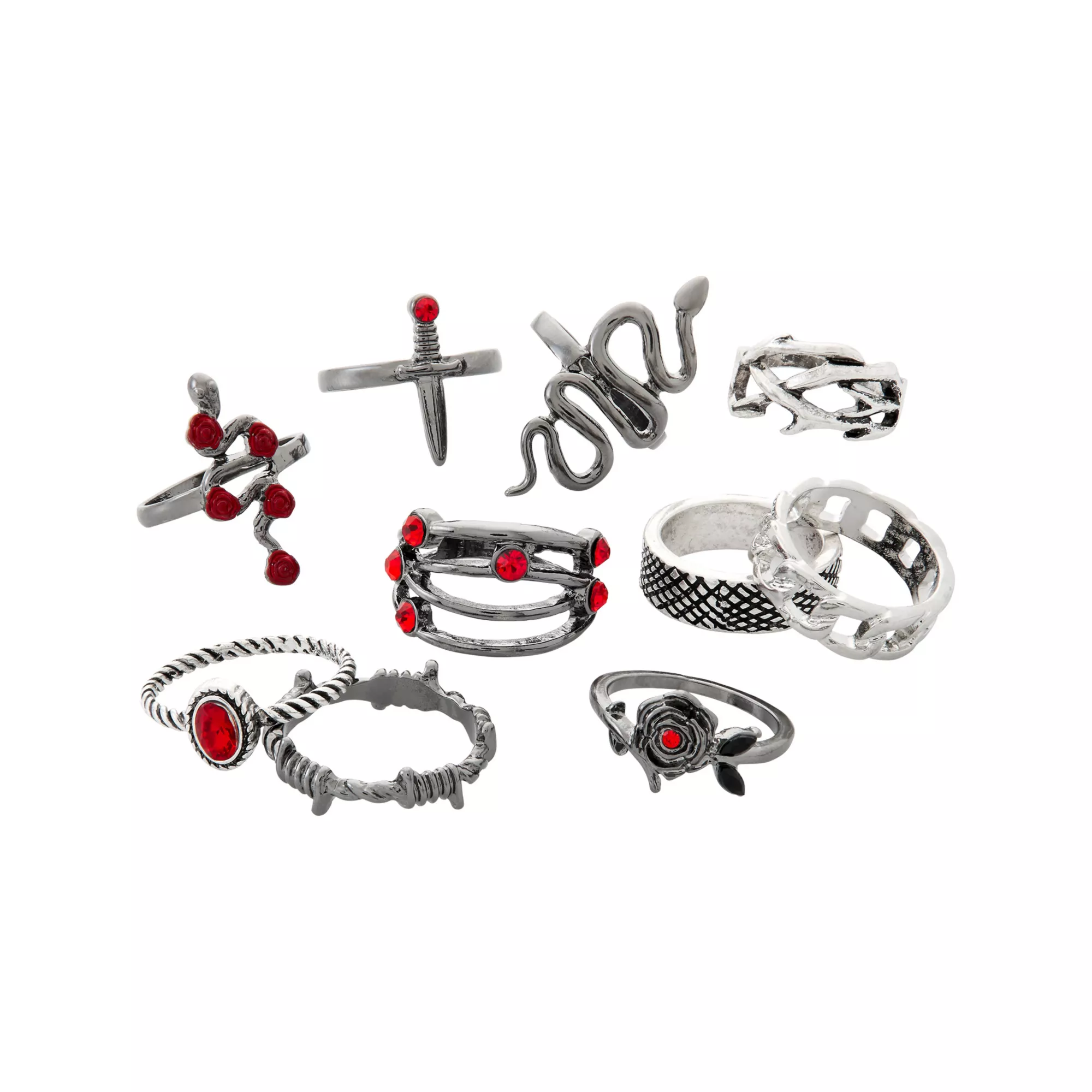 Multi-Pack Snake and Rose Rings - 10 Pack