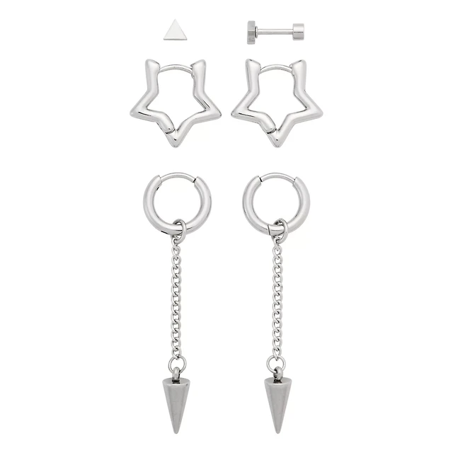 Multi-Pack Stud Star Hoop and Dangle Earrings 3 Pair - 18 Gauge