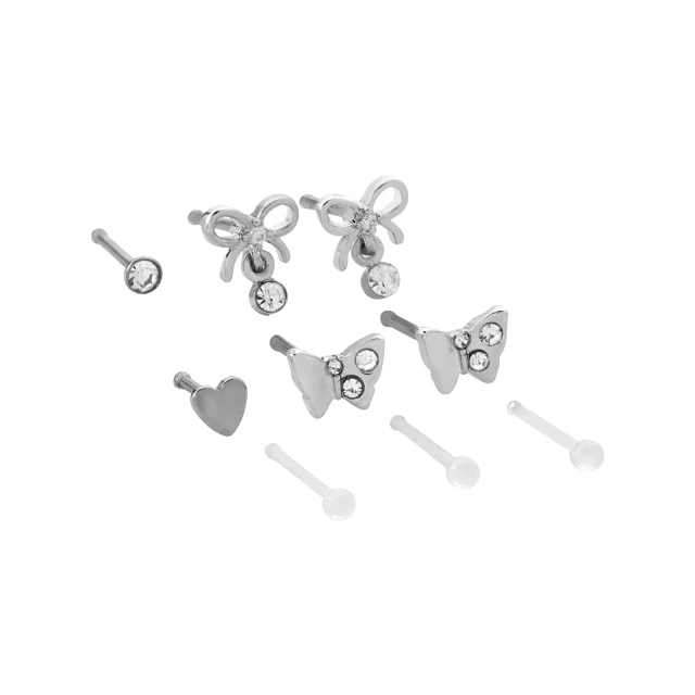 Multi-Pack Bow Heart and Star L-Bend Nose Pins 6 Pack - 20 Gauge
