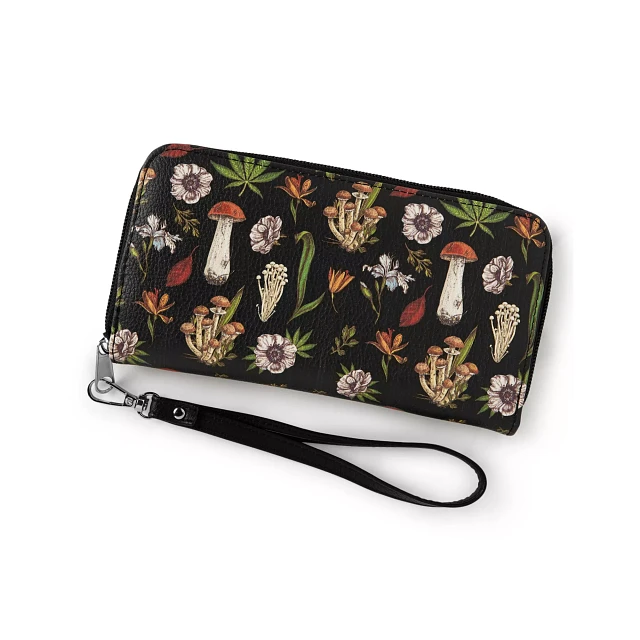 Mushroom and Leaf Print Zip Wallet