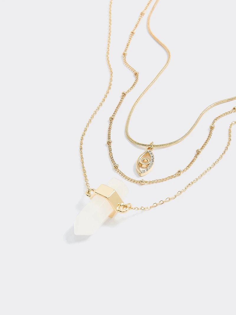 This mystical short necklace, featuring semi-precious stone pendants, is sure to add some style to your outfit.