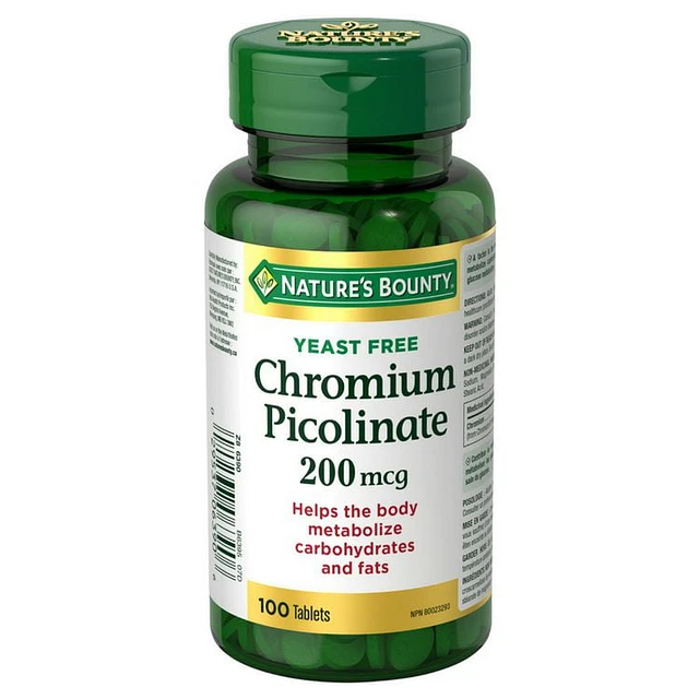 NATURE'S BOUNTY Chromium, Yeast Free, 200 mg, Helps Maintain Normal Blood Glucose Levels, Helps to maintain the body's ability to metabolize nutrients, Provides Support for Healthy Glucose Metabolism, Tablets 100.0 count, 100 Tablets