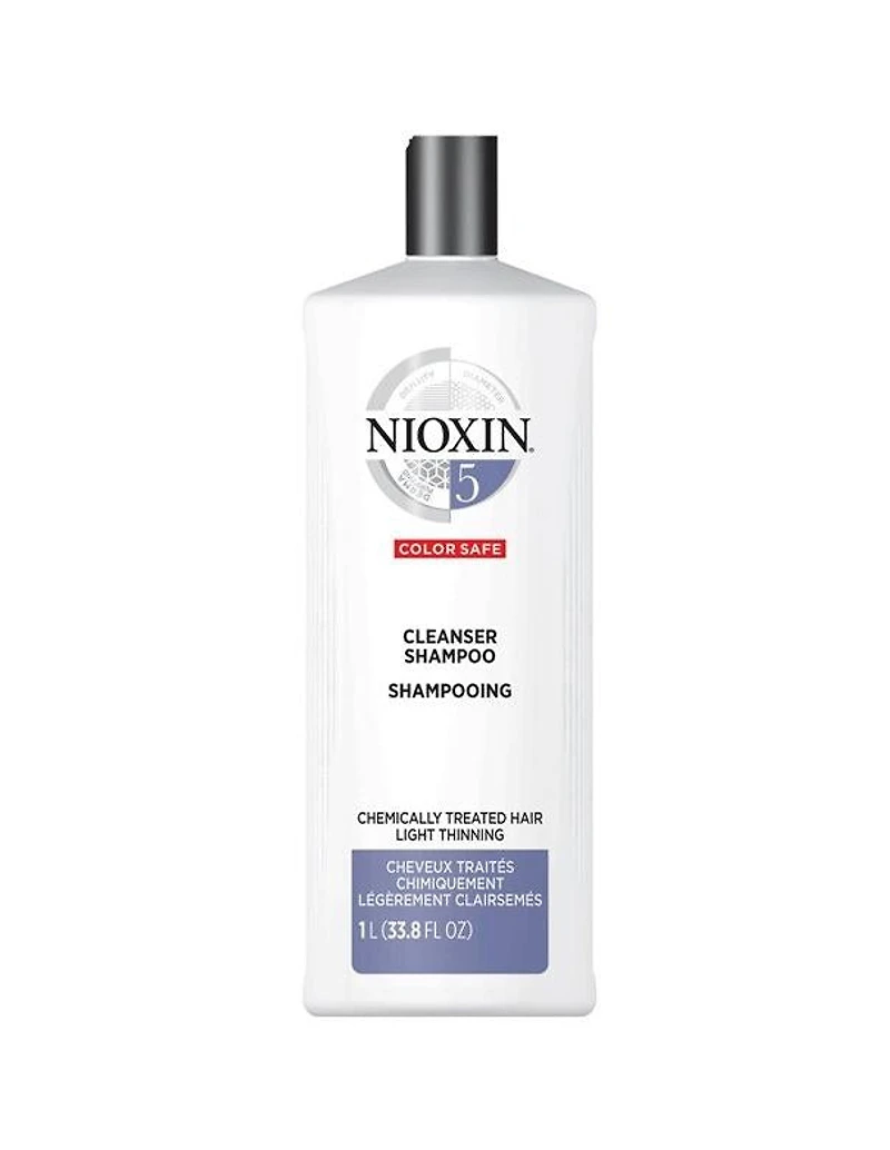 Nettoyant Nioxin System 5 Aide à éliminer le sébum obstruant les follicules et les résidus environnementaux du cuir chevelu et des cheveux. Nettoie pour des cheveux visiblement plus épais. Pour cheveux fins et naturels, normaux à clairsemés.