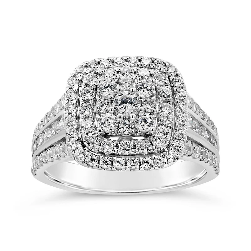 Introducing this captivating 10K White Gold Lab Grown 1.51CTW Diamond Fashion Ring, a true statement of style and sophistication. Crafted in shimmering 10K white gold, this fashion ring boasts a remarkable 1.51 carats of lab-grown diamonds in a dazzling cluster and pave setting. Its elegant design showcases the perfect balance of classic and contemporary, making it a versatile accessory for any occasion. Elevate your fashion game with this exquisite piece, adding a touch of luxury to your collection. This lab-grown diamond fashion ring is a shining example of your commitment to both style and responsible jewellery choices.