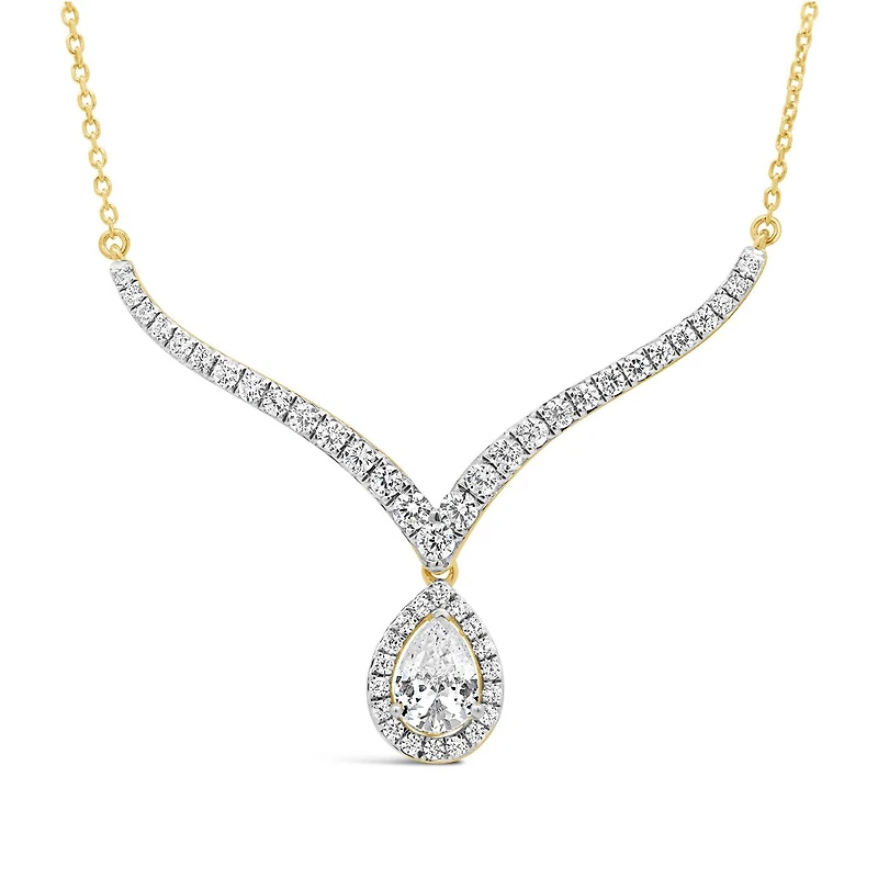 New Brilliance Lab Grown 1.20CTW Pear Diamond Necklace in 10K Yellow Gold
