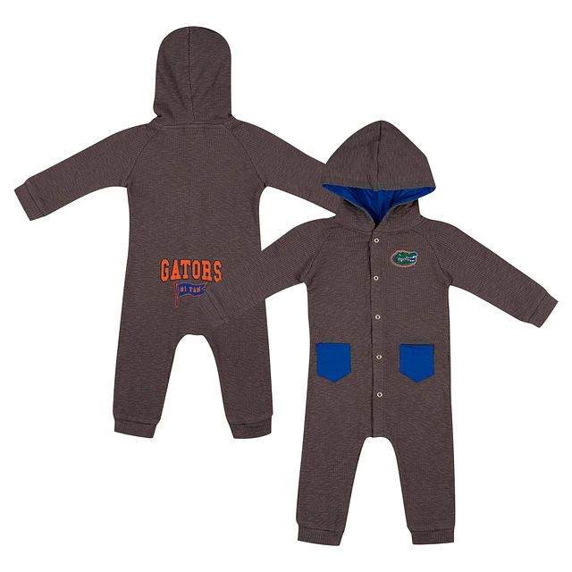 Newborn & Infant Colosseum Charcoal Florida Gators Zando-Zan Waffle Full-Snap Hooded Romper