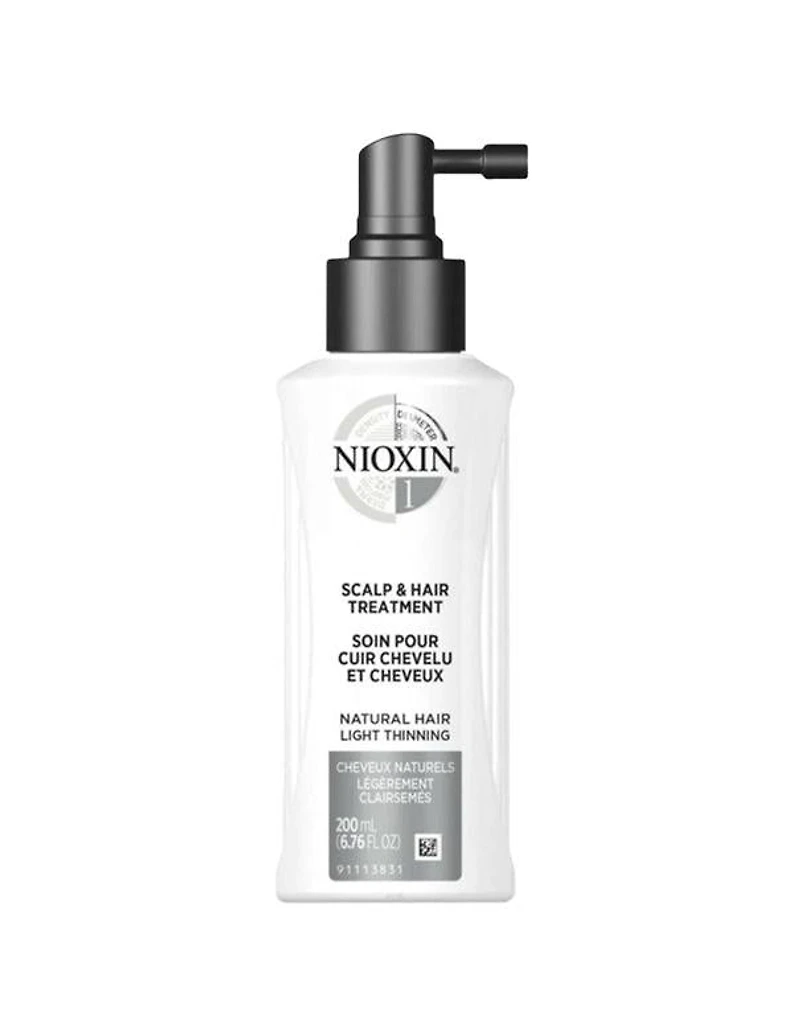 Nioxin System 1 Scalp Treatment - 200ml Nioxin System 1 Scalp Treatment is a volumizing leave-on treatment that contains antioxidants and botanicals that help to provide a refreshed scalp environment for normal-thin looking hair. For normal - thin looking, fine, natural non chemically treated hair. Technology Transactive Delivery System with antioxidants, botanicals, vitamins, and purifying agents to help clean away follicle-clogging sebum and environmental residues from the scalp, leaving the scalp feeling clean and refreshed. BioAMP with cystine amino acids, and lightweight conditioning and treatment ingredients; helps provide thicker-looking hair by increasing the fullness of each hair strand, and reducing hair loss through strengthening against damage and breakage. Activ-Renewal with white tea extract, peppermint oil and cleansing agents to help cleanse and provide a refreshed scalp environment and healthy shine to natural hair. Use Apply directly to entire scalp. Gently massage into scalp. Do not rinse. Use daily. May cause temporary redness to scalp after application.