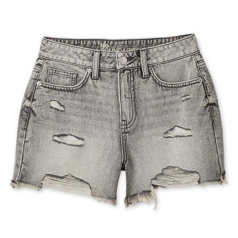 No Boundaries women’s distressed denim short brings that lived-in, throw-on edge every closet needs. The denim has an enzyme wash for a softer, broken-in feel, finished with fading, distressed details, and raw hems that keep the look authentically undone. With a high-rise fit, classic 5-pocket design, and a button and zipper fly closure, these shorts pair effortlessly with crop tops, graphic tees, or oversized hoodies.This is a Junior Fit, we recommend sizing 1-2 sizes up from your regular size.