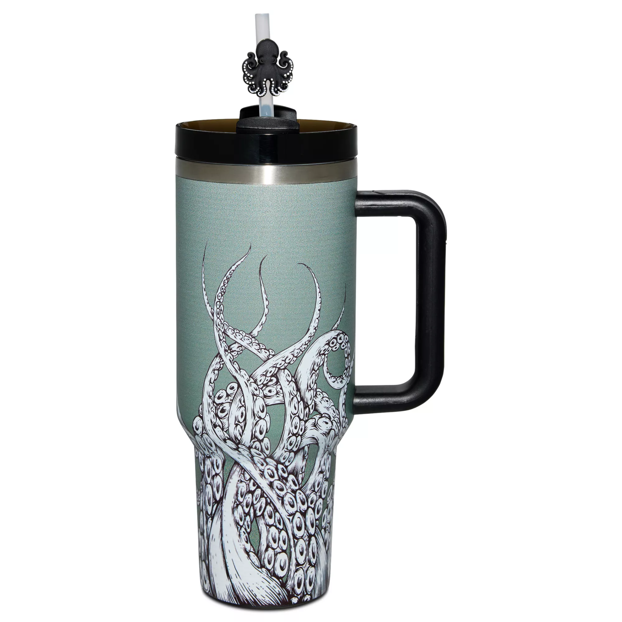 Rock a nautical-chic style with each sip when you use this exclusive Octopus Tentacle Travel Tumbler with Straw Topper! Its eye-catching illustrated designs, cool mint green hues, and charming octopus straw topper make it a must-have for anyone who's a seafarer at heart.