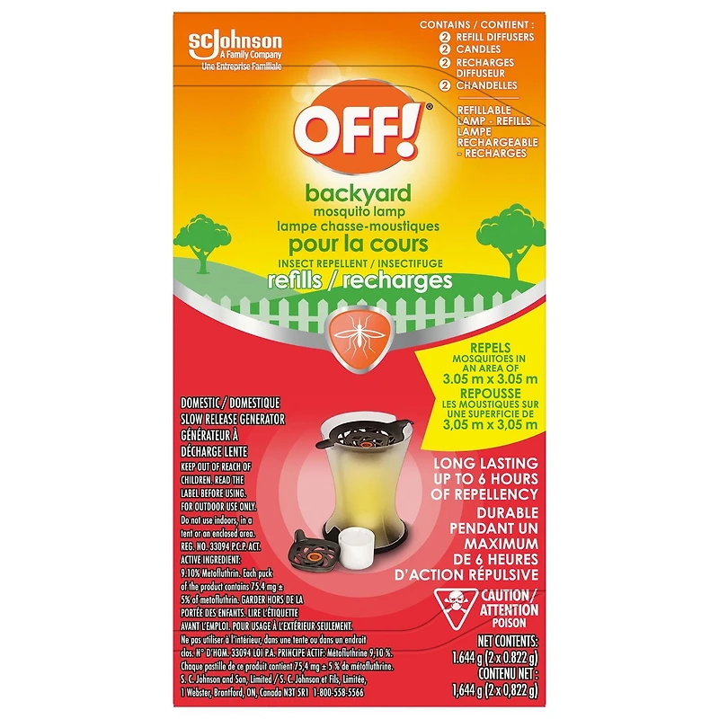 OFF! Backyard Insect and Mosquito Repellent Lamp Refills, Ideal for Camping and Outdoors, Up to 6 Hours of Protection, Canadian Print, 2 Diffuser Refills, 2 Refills