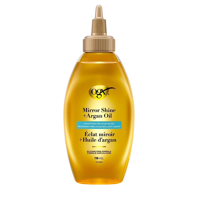 OGX Mirror Shine + Argan Oil Pre-Wash Hair Gloss, Smoothing Rinse Out Treatment for 48 Hours of Glossy Shine* & Nourishing Repair, Lightweight Hair Oil Mends Split Ends***, 118 mL