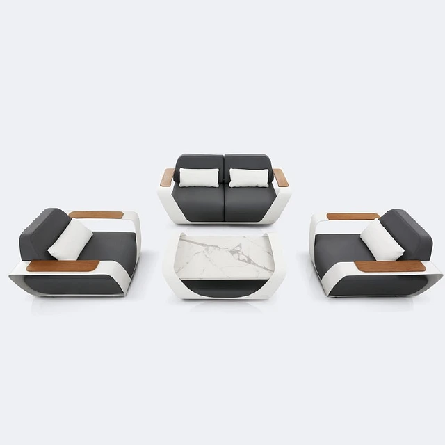 Blanca Sofa Conversation Set – Black Tippet Frame – Dark Grey Cushions