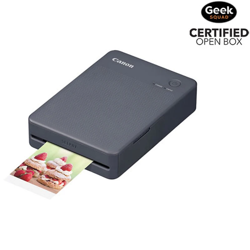 This is a Geek Squad Certified Open Box Product. See below for more information. From digital to tangible, make memories last with the Canon SELPHY QX20 photo printer. This compact and portable printer lets you print personalized images from your everyday life. With dye-sublimation technology, it delivers vibrant, high-quality prints that resist fading and water damage. Each photo gets a special protective overcoat, ensuring durability for up to 100 years.