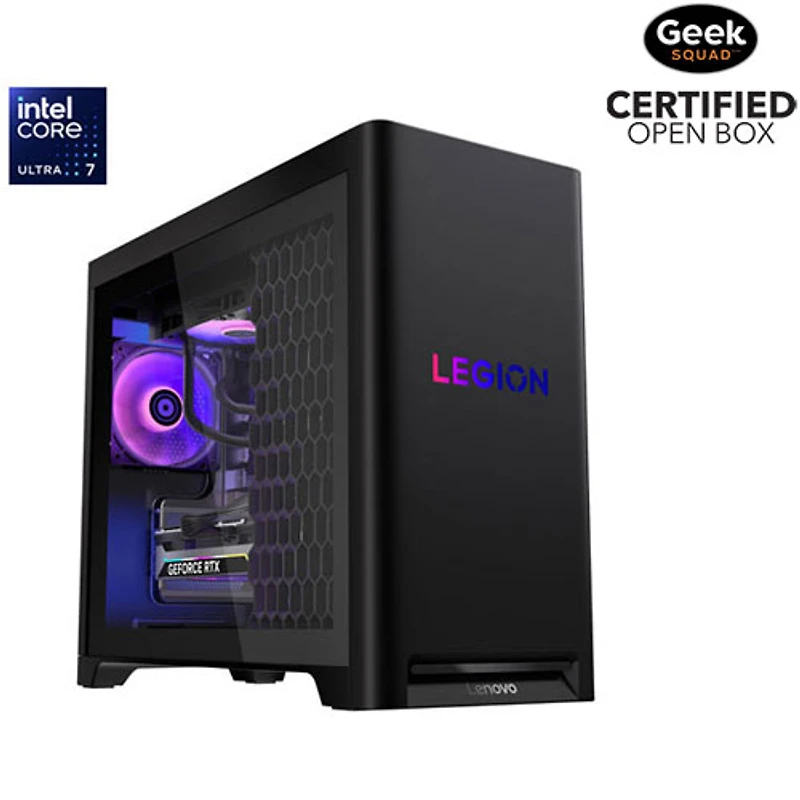 This is a Geek Squad Certified Open Box Product. See below for more information. The Lenovo Legion Tower 5i 30L desktop PC meets all your daily computing needs. Powered by an Intel Core Ultra 7 265F processor and 64GB DDR5 RAM, it delivers smooth multitasking for demanding applications. The 2TB solid state drive provides fast load times and ample storage for files, games, and media. Integrated Wi-Fi 6E and Bluetooth 5.3 ensure reliable wireless connectivity.