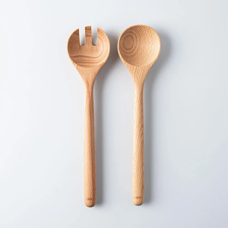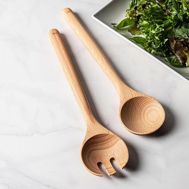 Serve up salads with a side of style! This beautifully crafted 33.3 cm (13.1") beechwood salad server set from OXO is designed to make tossing and serving a breeze. With gently curved heads that nest together for easy storage and long, rounded handles that stay put in even the biggest bowls, they’re as functional as they are elegant. Finished with food-grade mineral oil for lasting durability—these natural beauties are built to last. Just hand wash, stack, and serve!