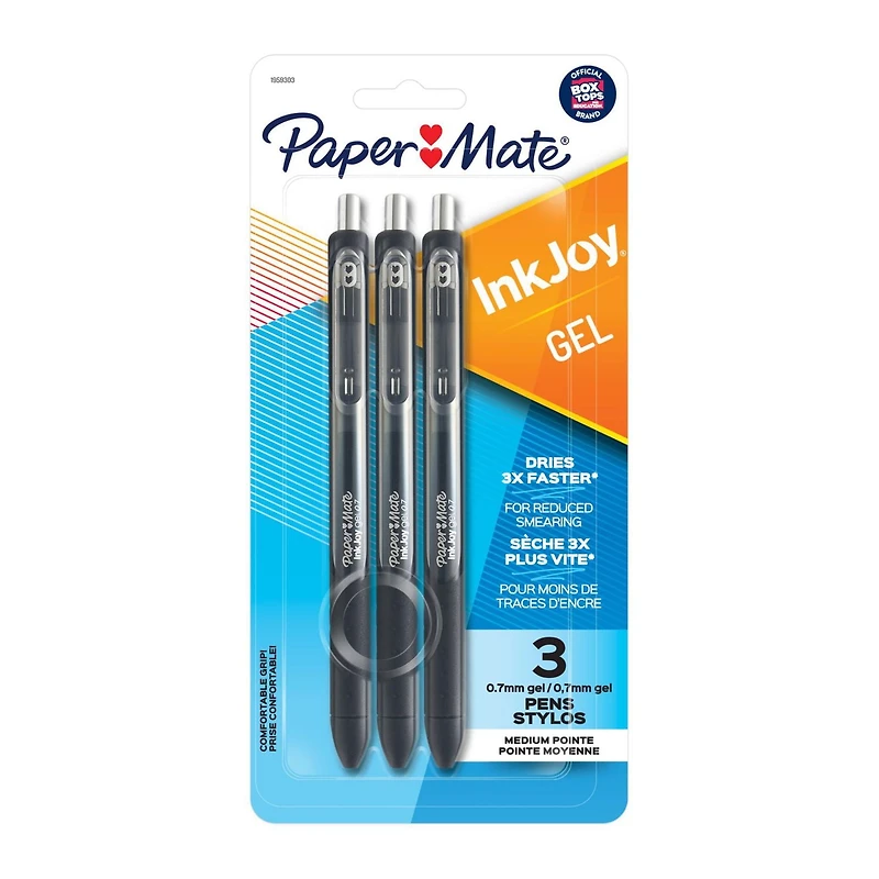 Paper Mate InkJoy Gel Pens, Medium Point (0.7 mm), Black, 3 Piece