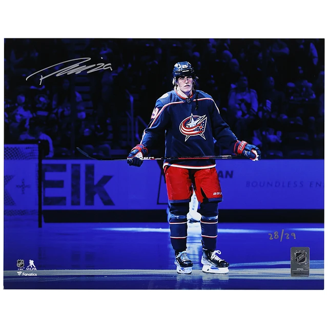 Patrik Laine Columbus Blue Jackets Autographed 11" x 14" Navy Jersey Pregame Photograph - Limited Edition #29/29