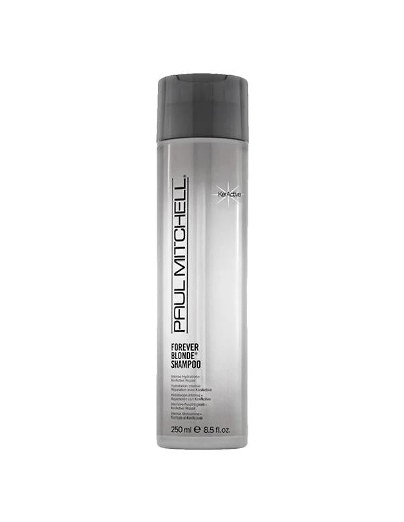 Paul Mitchell Forever Blonde Shampoo - 250ml INTENSE HYDRATION • KERACTIVE REPAIR Repair and help brighten blonde hair with Forever Blonde® Shampoo from Paul Mitchell®. This sulfate-free shampoo for chemically treated hair gently cleanses lightened and highlighted hair while helping to repair damage and seal the cuticle. Enhanced with KerActive protein and a special blend of botanicals, it provides intensive nourishment to help keep blonde hair light, bright and healthy.