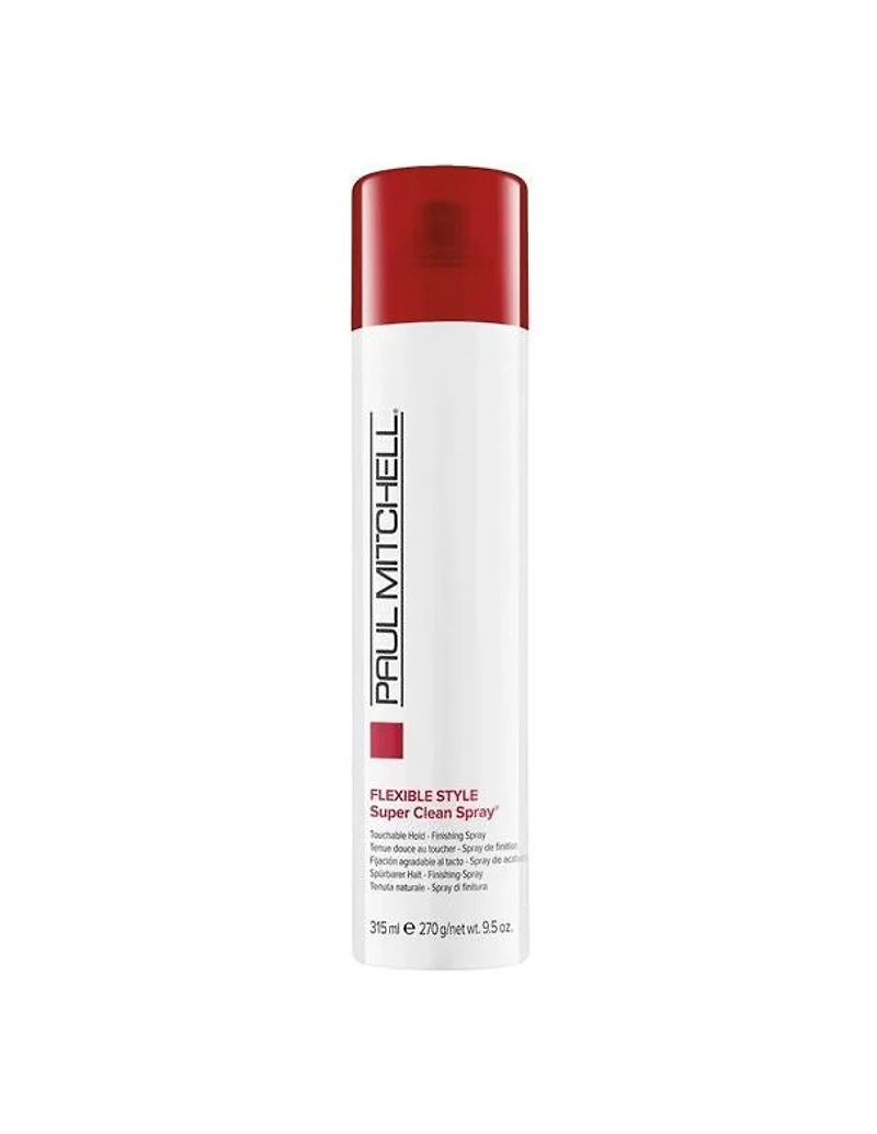 Paul Mitchell Super Clean Spray - 315ml Ideal for All Hair Types. Create strong looks with this fast-drying hairspray that adds fullness, texture and shine to hair. The lightweight formula offers flexible hold that lets you brush through and style hair the way you want it. Fine mist dries fast with clean, touchable results.