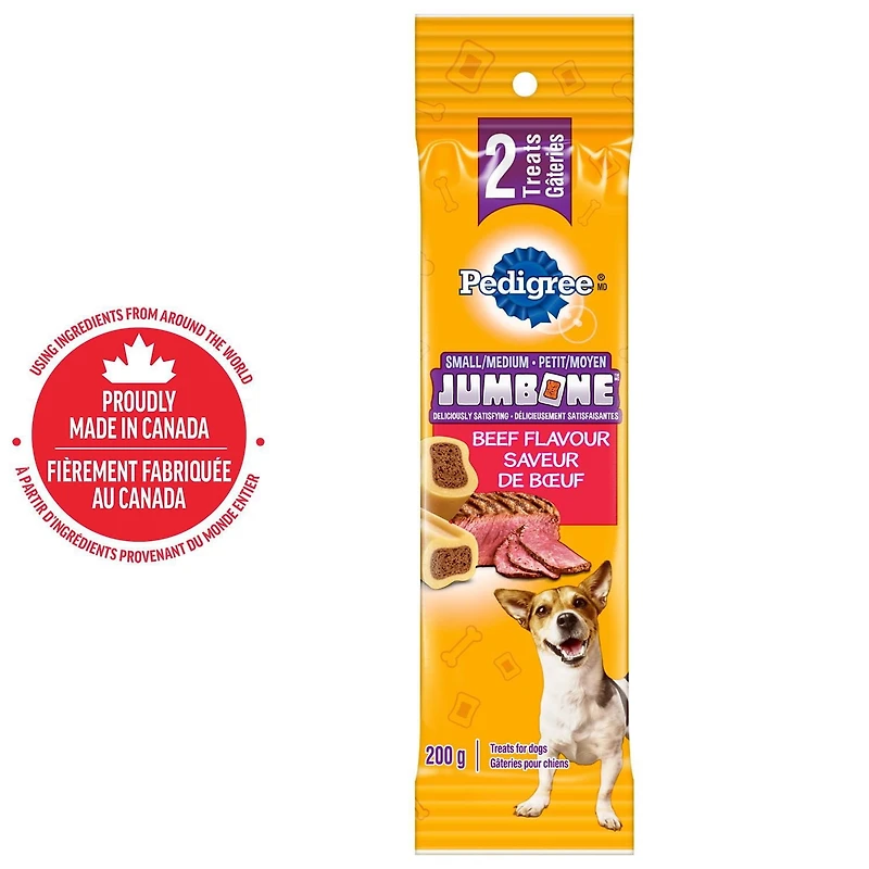 Treat your dog to a delicious long-lasting chew with a PEDIGREE Jumbone. Each treat has a tasty double texture—a chewy, bone-like outer layer and a meaty centre with real beef flavour. Specially formulated for small to medium dogs, PEDIGREE Jumbones are made with added vitamins and minerals and are high in fibre and low in fat. Deliciously satisfying, treat your dog to a snacking experience they won’t forget! When a dog is healthy and happy, there’s no limit to the amount of good they can infuse into our lives. At PEDIGREE we offer great-tasting recipes that are sure to delight your dog, while delivering targeted nutrients that dogs need to be at their best. Our commitment to dogs doesn’t stop at food. We also believe every dog deserves a loving home. That’s why we’re passionate about helping shelter dogs find forever families. With so much good to share, every man’s-best-friend deserves a best friend.