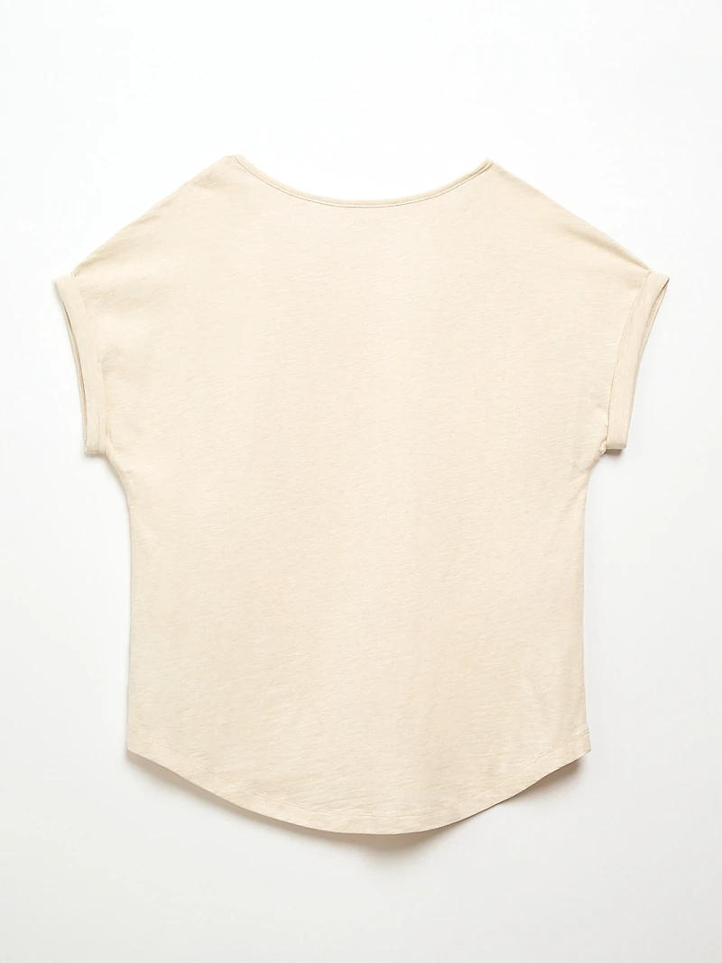 Petite Short Cuffed Sleeve Slub Boat Neck Tee in Stone MixPetite Short Cuffed Sleeve Slub Boat Neck Tee in Stone MixPetite Short Cuffed Sleeve Slub Boat Neck Tee in Stone Mix