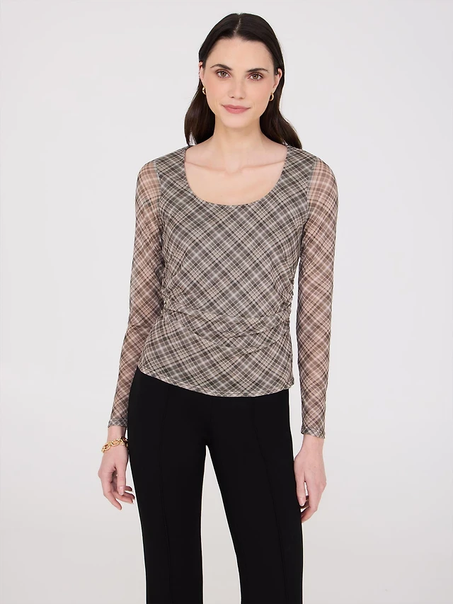 Animal Print Mock Neck Mesh Top & Mia Straight-Leg Pants