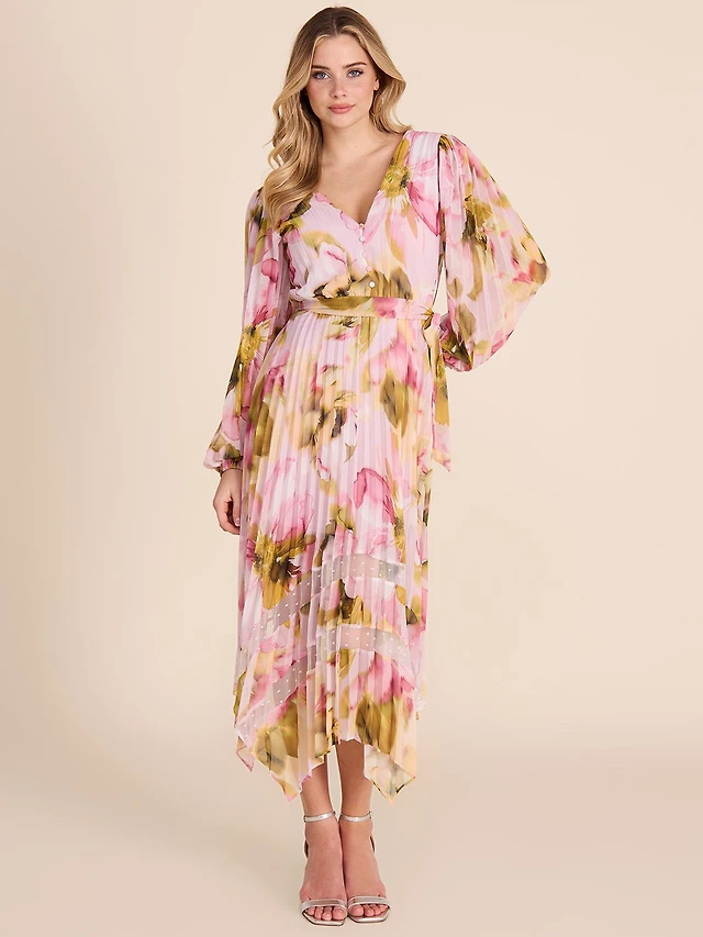 Fit & Flare Midi Dress With Floral Pearl Appliqués