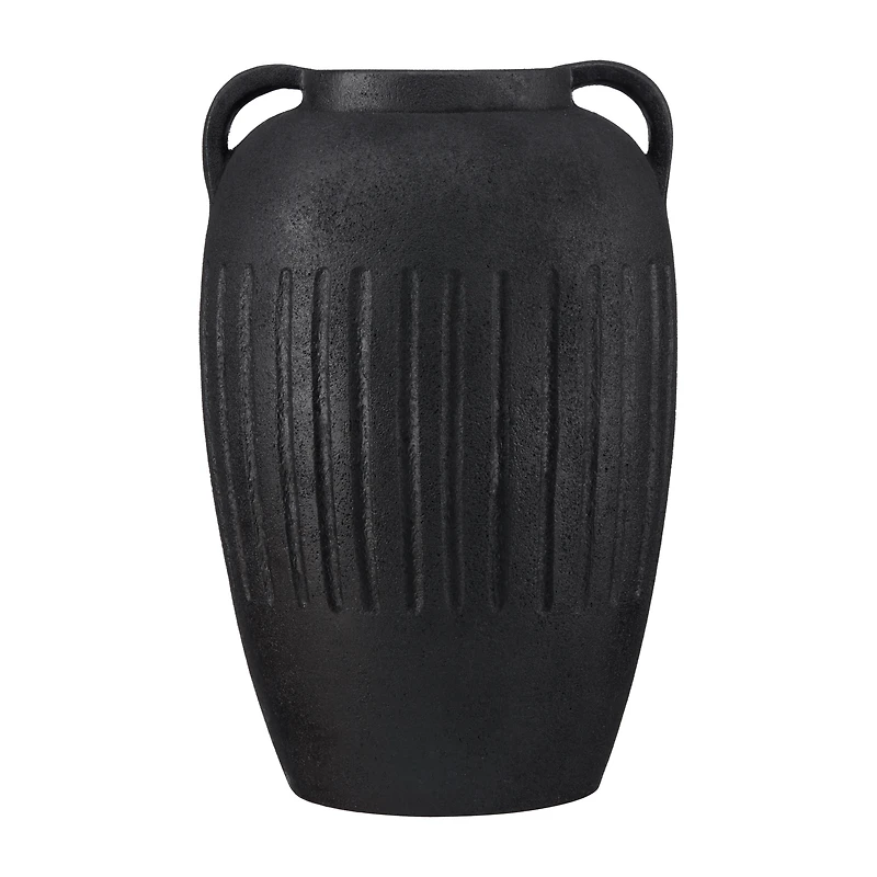 Add bold character to your home with this textured black ceramic decorative pot. Featuring a rounded silhouette, vertical grooves, and integrated handles, it brings a refined artisanal feel with a contemporary edge. Perfect for styling on a console, shelf, or floor, it adds depth and sophistication to any space. Ideal for modern, minimalist, or wabi-sabi interiors, this decorative pot is a timeless statement piece.