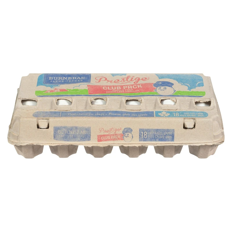 Burnbrae Farms Prestige eggs are produced from young hens in the peak of their laying cycle. They have a firm, smooth shell and the white and yolk hold together well, making them ideal for frying and baking.Eggs are one of nature's most nutritious foods. Two large eggs contain 16 essential vitamins and minerals and only 160 calories and an incredible amount of nutrition.