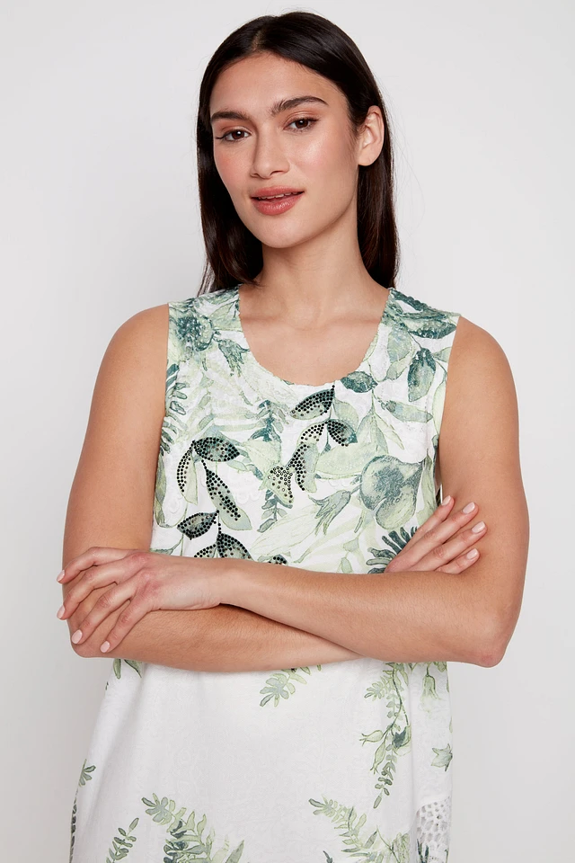 Recycled Fibers Chrysanthemum Print Lace Trim Pants