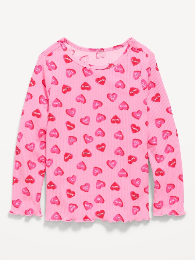 Long-Sleeve Lettuce-Edge Ribbed T-Shirt for Toddler Girls
