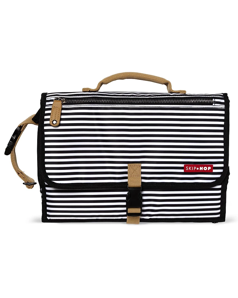 The ultimate diaper changing tool makes baby changing easy-no matter where you are. Our ultra-convenient clutch features a wipe-clean, zip-off changing pad, built-in pillow and translucent wipes case for timely refills. The large mesh pocket holds up to four diapers plus creams and other essentials, while the front zippered pocket is perfect for keys, cell phone or other personal items. Simply drop the Pronto in your bag, strap it to your wrist or clip it to your stroller and go!