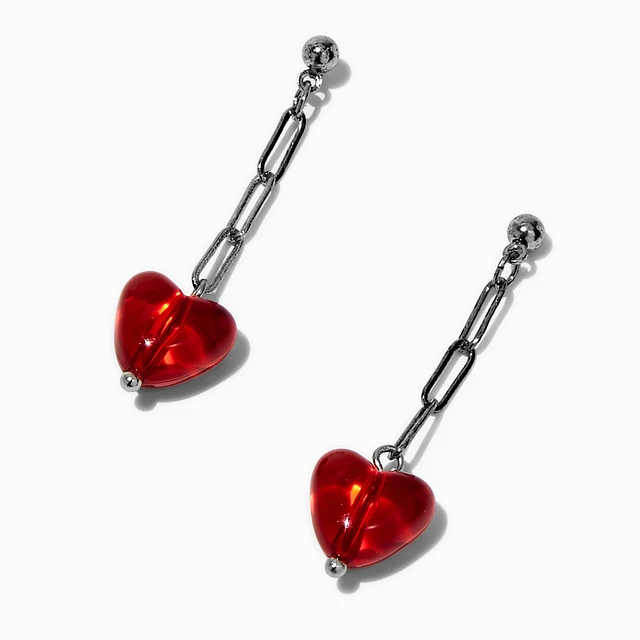 Red Puffy Heart Chain Drop Earrings