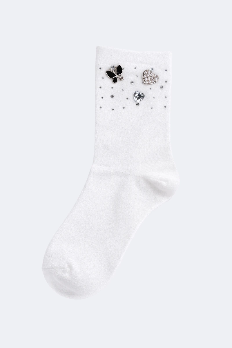 Rhinestone butterfly charm crew socks
