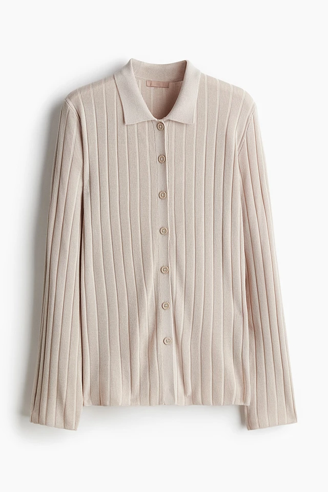 Rib-knit Button-front Top