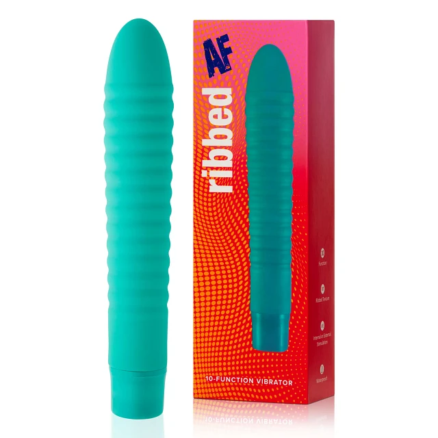 Ribbed AF 10-Function Waterproof Vibrator Green - 8 Inch