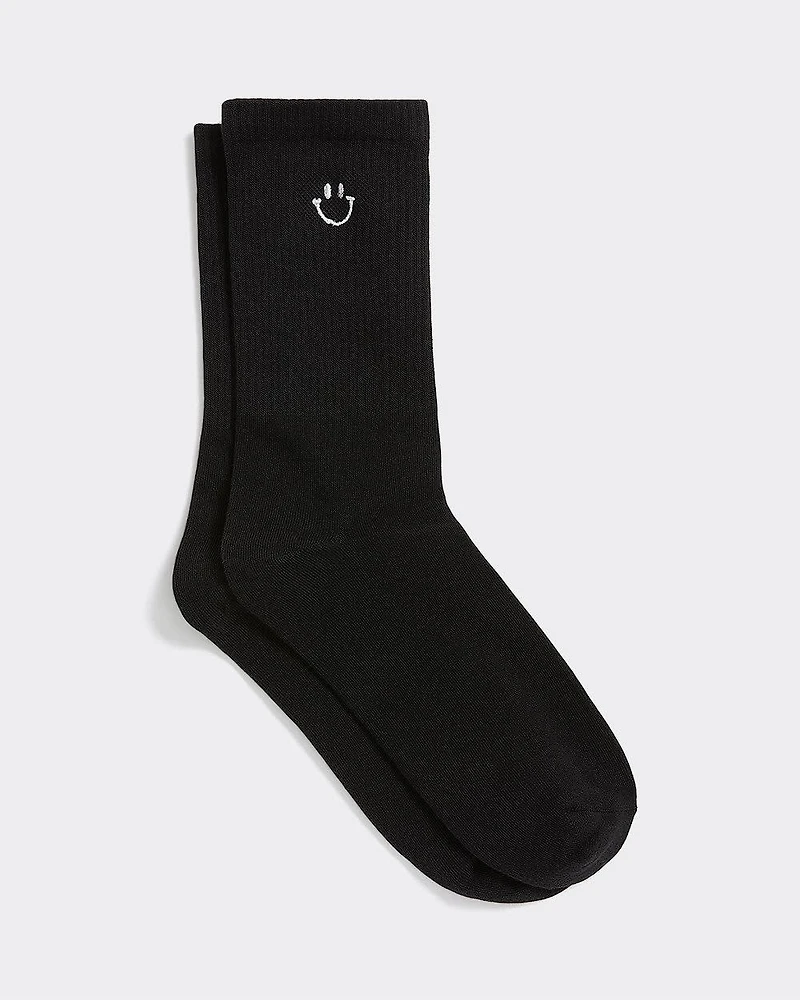 Add a touch of style to your look with this pair of soft cotton-blend socks featuring an adorable smiley face embroidery at the hem.