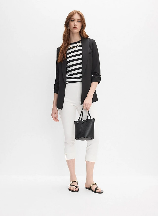 Linen-Blend Open Front Jacket & Pull-On Frayed Capri Jeans